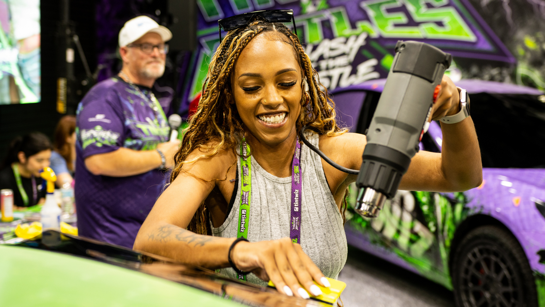Then, the energy shifts into HIGH GEAR with the Tinter Battles™ Window Tint Competitions — the most entertaining and watched window tinting competition in the world. Featuring a sports-like format, competitors from around the globe battle it out for the Tinter Battles™ World Championship Title across (3) divisions. It’s more than just a competition — it’s a spectacle of skill, a CLASH OF STYLES, the magic of "tintertainment™", it's — Tinter Battles™!